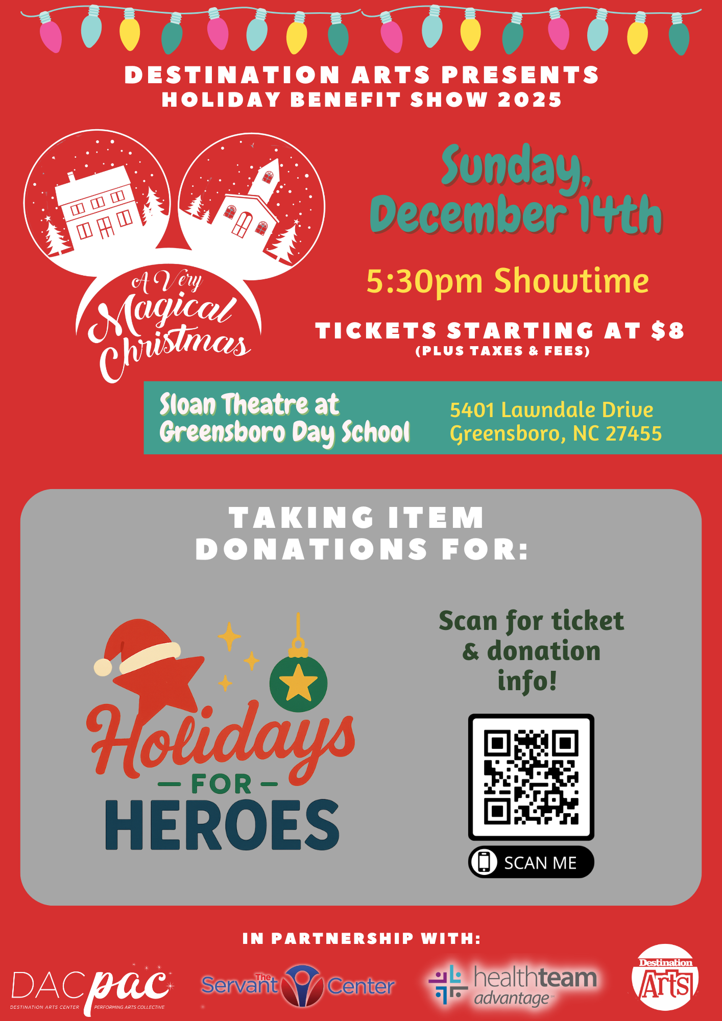 We are excited to be partnering with The Servant Center & HealthTeam Advantage to take "Holidays for Heroes" donations the weeks leading up to the show. The Servant House is a 21-bed transitional housing program for disabled veterans who are experiencing homelessness. They help them to stabilize medically, access benefits and secure permanent housing, and last year they served 46 veterans and 95% exited to permanent housing with 100% having income! The Servant Center provides the veterans with all necessities including linens, toiletries, clothing, three meals a day, and snacks. Most all items can be gotten at the dollar store for very little, but provide so much! We thank you so much for partnering with us and your willingness to collect supplies in support!
