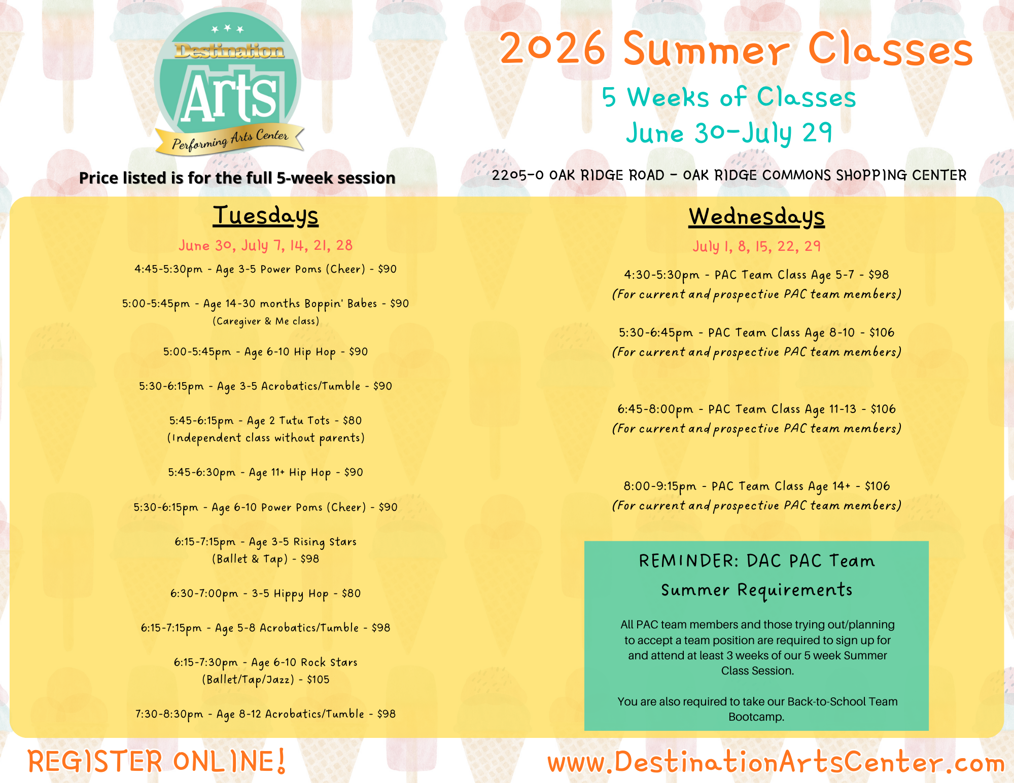 Summer fees are due in full at the time of registration.