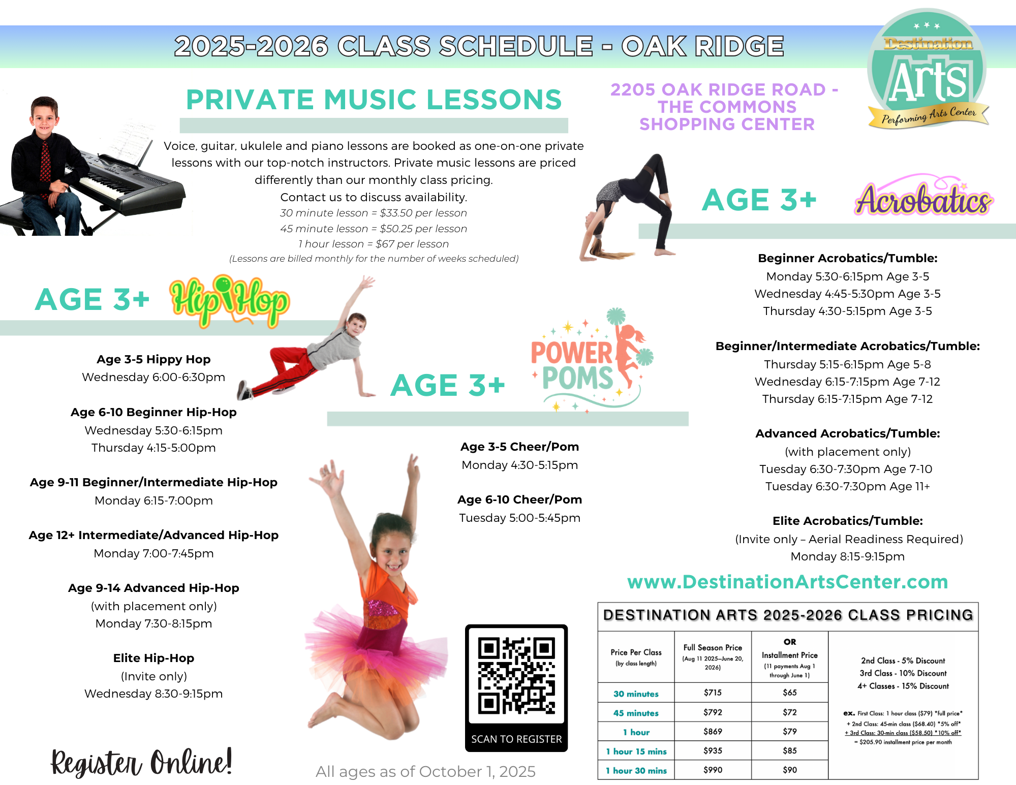 School Year Classes Begin August 11, 2025 and run through June 12, 2026 with a recital performance the weekend of June 20, 2026.